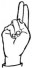 На ћирилици написано БУДИМИР ПОПАДИЋ састоји се из 14 слова [?]. Исписано ћириличном једноручном азбуком за глувонеме: